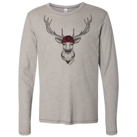 Deer in Stormy Kromer Hat Long-Sleeve Shirt by Ales To Trails