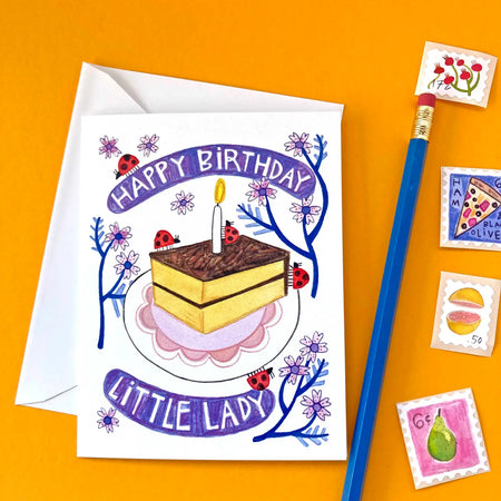 Happy Birthday Little Lady with purple - by Katie Eberts Illustration